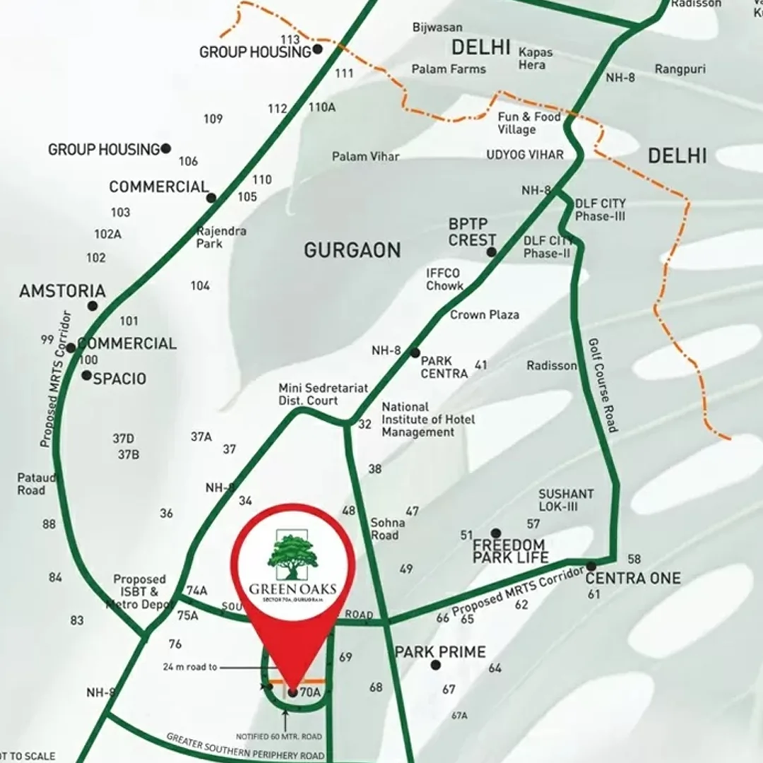 A. BPTP Green Oaks Sector is located in Sector 70A Gurgaon & close proximity to Dwarka Expressway, Delhi & Jaipur Expressway and IGI Airport etc., offering excellent connectivity and lifestyle benefits.