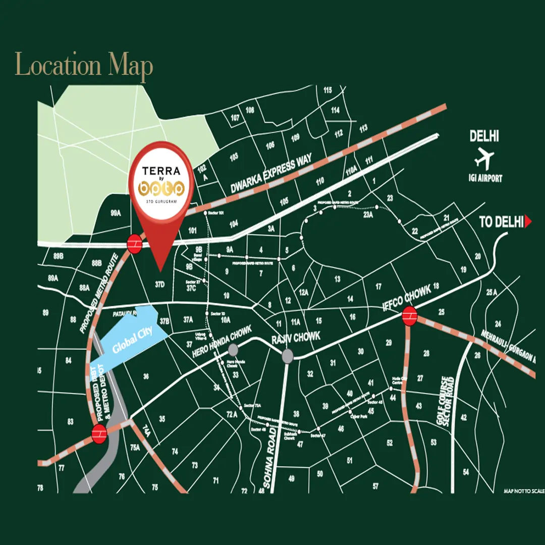 A. BPTP Terra is located in Sector 37D Gurgaon bang on Dwarka Expressway & & close proximity to Delhi and IGI Airport etc., offering excellent connectivity and lifestyle benefits.
